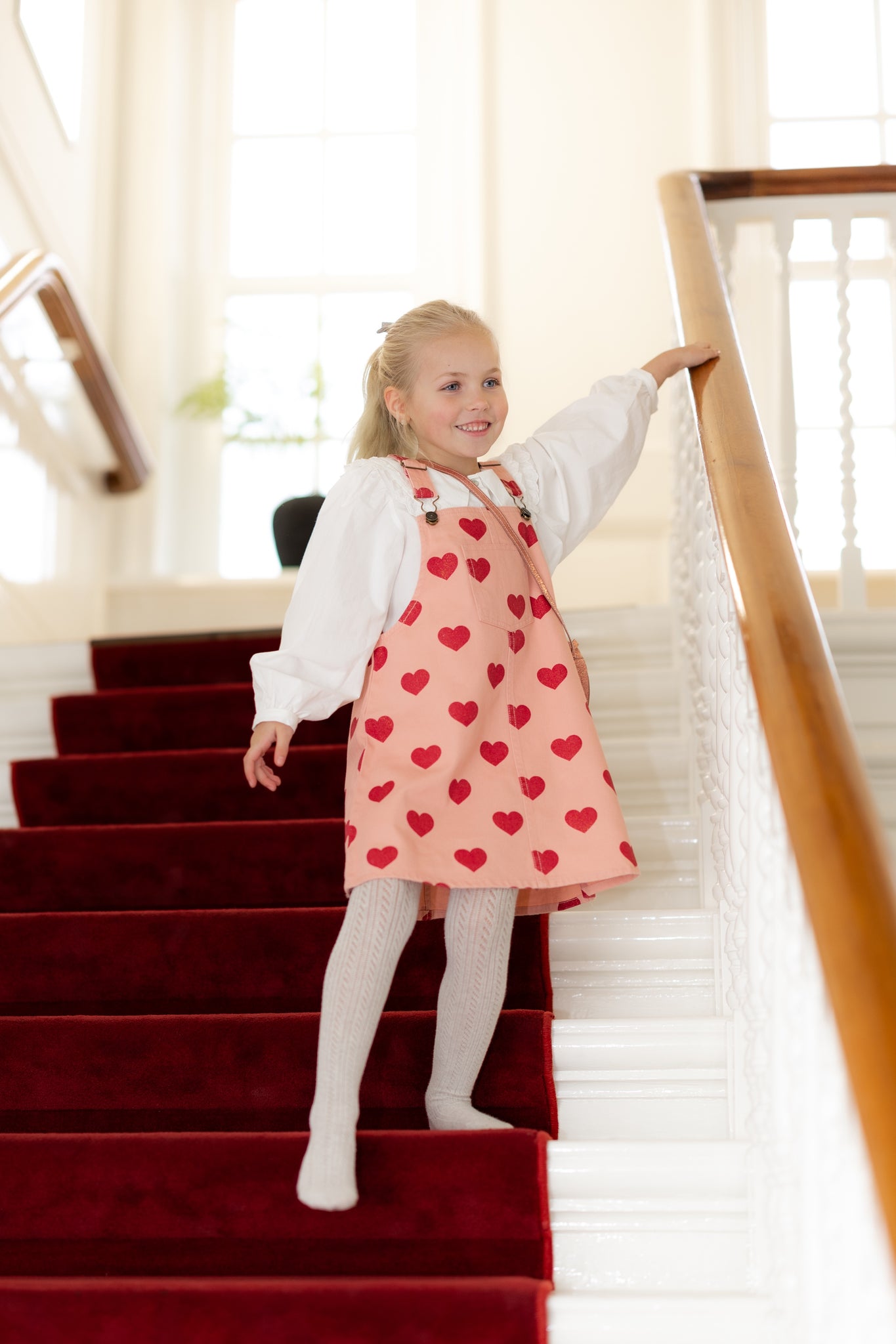 Roze tuinjurk met rode hartjesprint