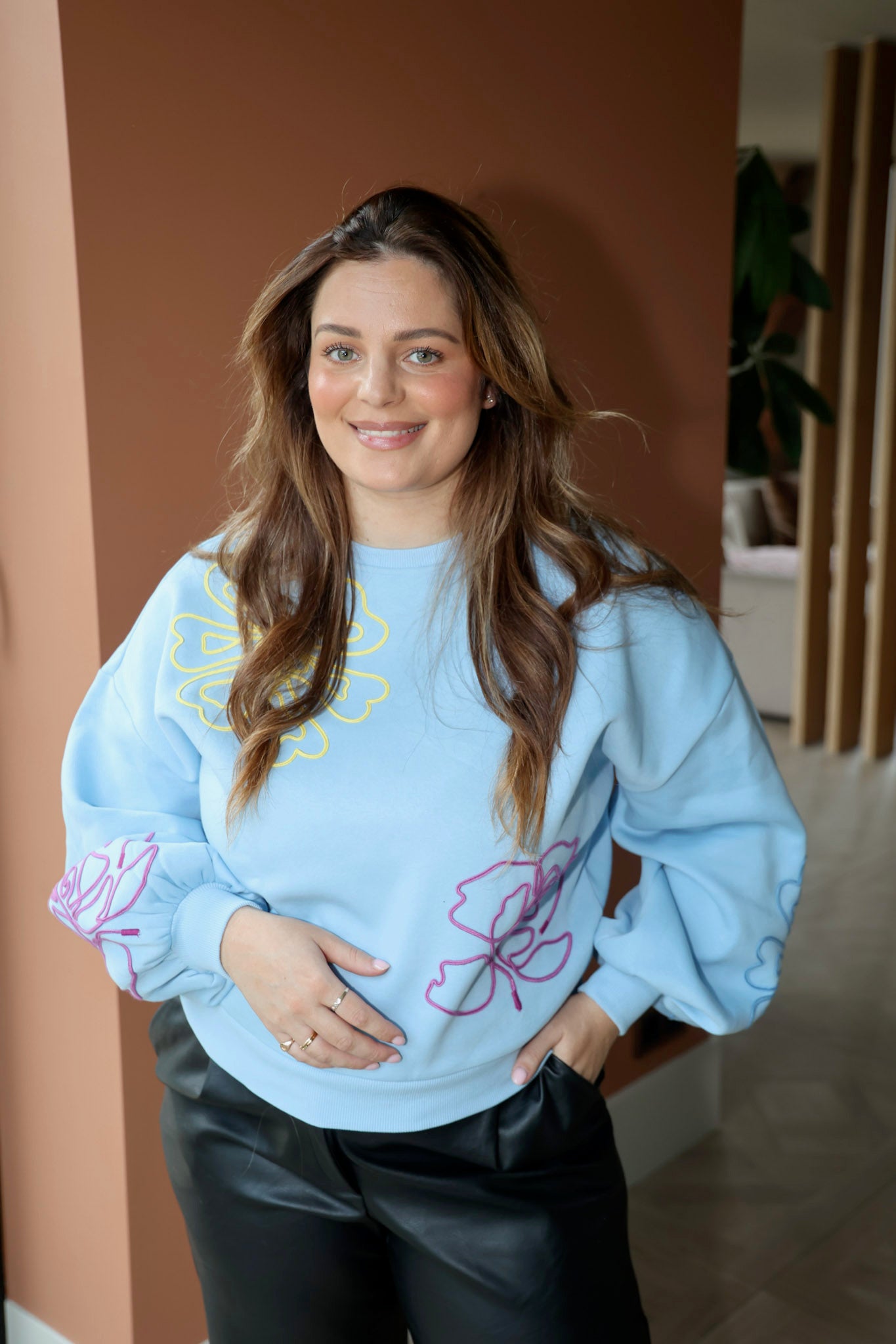 Deze sweater heeft een mooie lichtblauwe trui met kleurrijke bloemen en een zachte macaron fit. Perfect om het voorjaar in te luiden en makkelijk te combineren met elke jeanskleur! 🌼