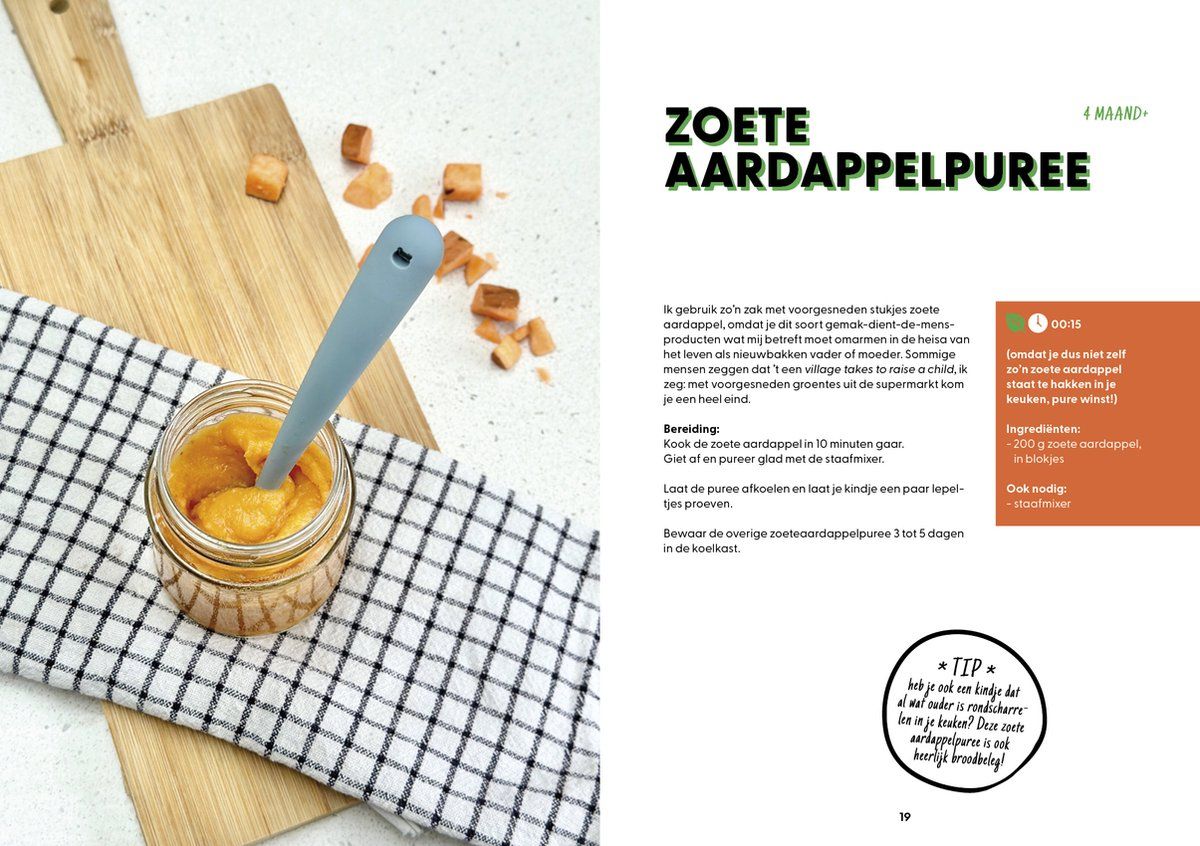 Het boek Gewoon wat mijn baby ’s avonds eet van Leonie ter Veld, zit boordevol recepten voor het eerste jaar van je kleintje! Van smakelijke prakjes tot handige tips, vrolijke anekdotes en superhandige info over wat je kindje allemaal kan en mag eten van 4 maanden tot 1 jaar. Alles wat je als kersverse ouder zoekt, gebundeld op één plek. Dit kookboek voor kindjes van 4 maanden tot 1 jaar bevat niet alleen 50 recepten, tips en info, maar komt inclusief invulpagina’s waarop jij als ouder bij kunt houden welke hapjes in de smaak vallen bij jouw mini en welke niet. Zo maak je meteen een eetdagboekje voor je baby; geweldig om later terug te kijken en voor nu superhandig.
