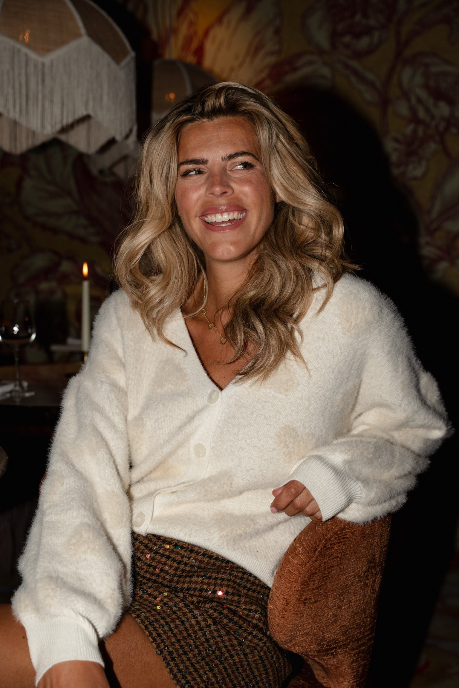Dit vest heeft een mooie ecru kleur en een all-over hartjes print. Het vest heeft lange mouwen, grote knopen én is gemaakt van een super zachte stof. Dit vestje wordt absoluut de nieuwe favoriet!