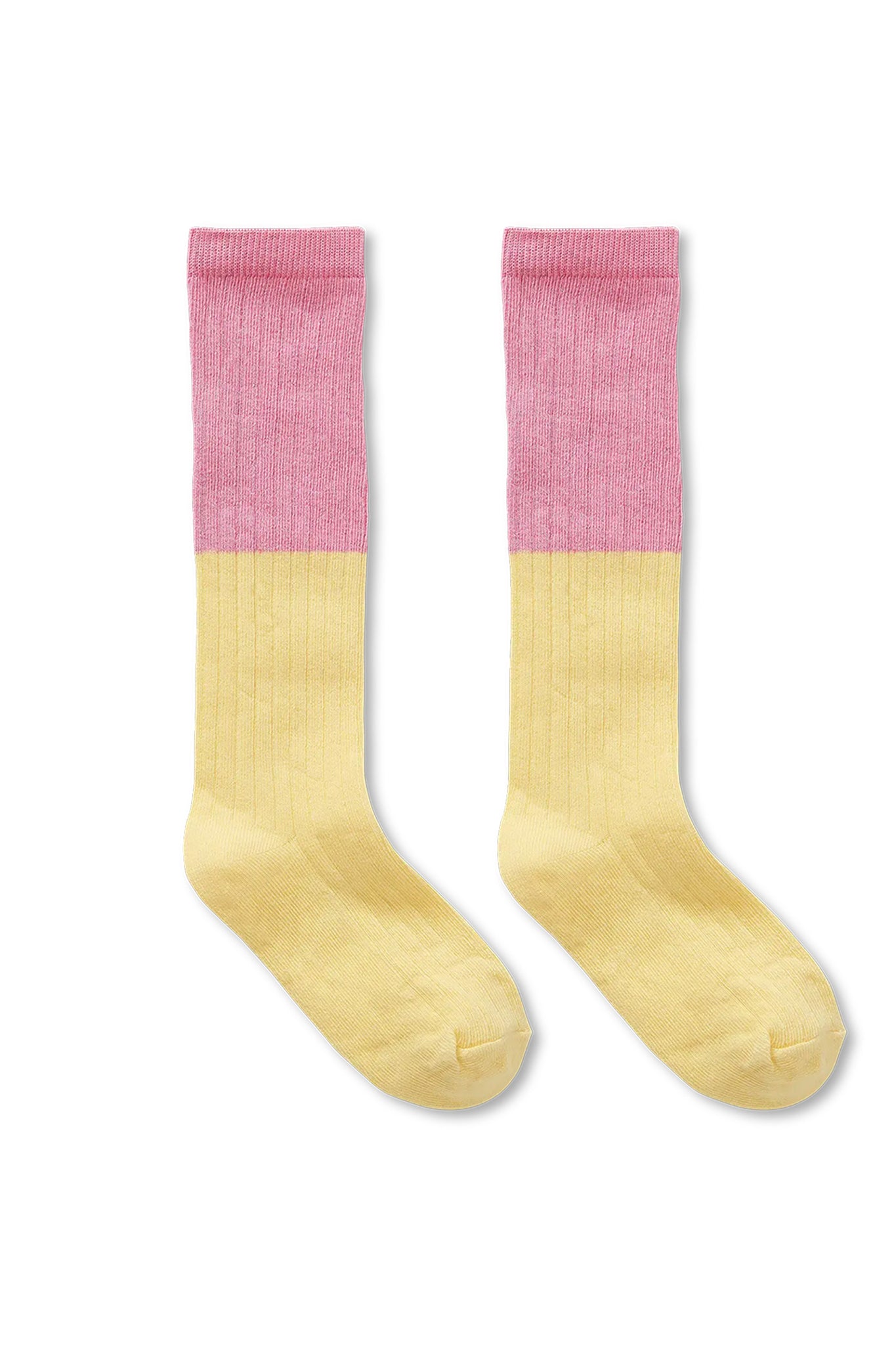 Hoge sokken met geel/roze colorblock effect