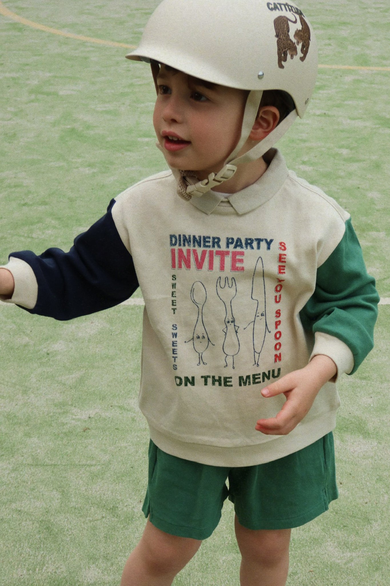 Polo met kraagje, print op de voorzijde en gekleurde mouwen
