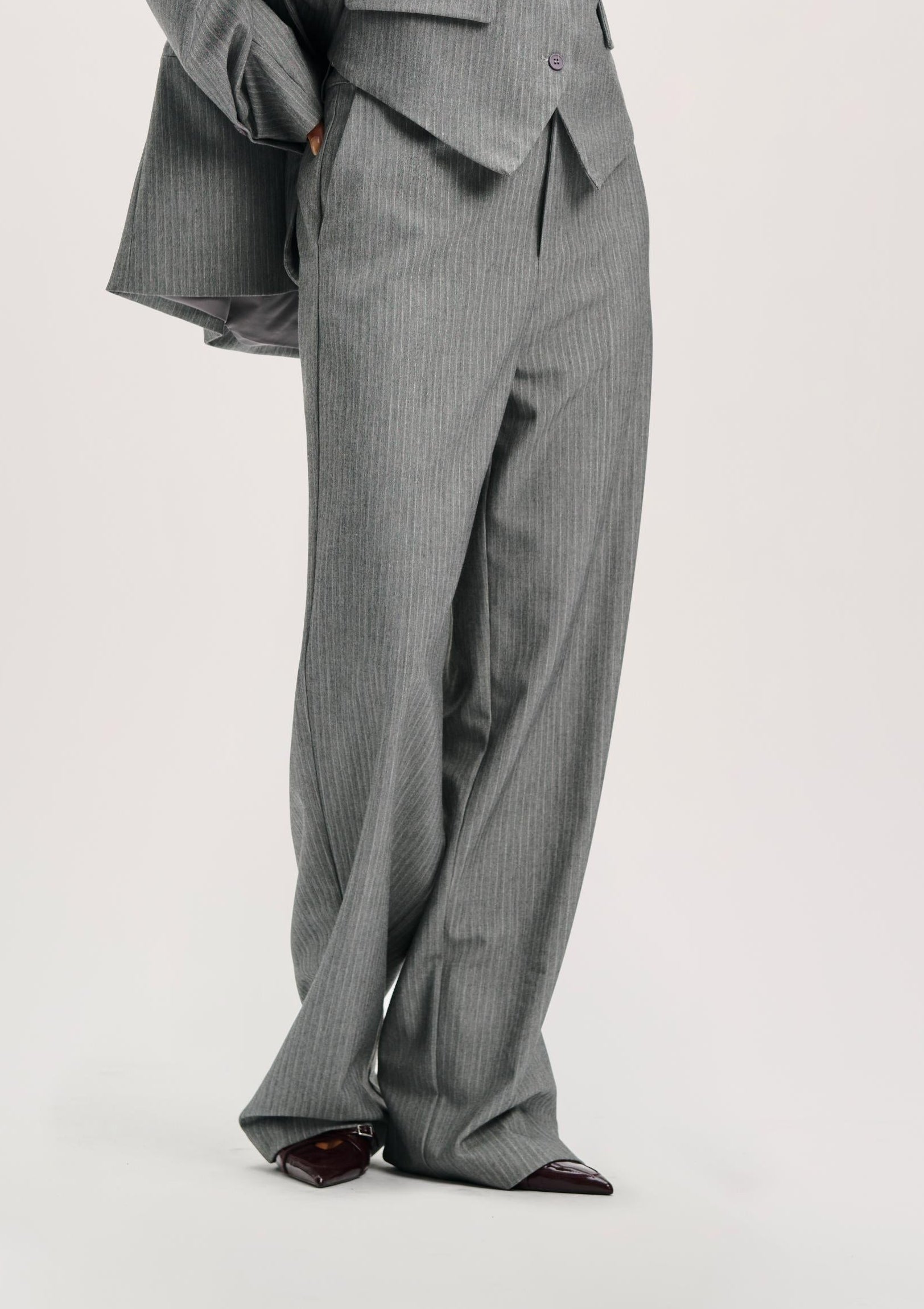 Lange grijze blazer met zakken, logo detail en plooidetails