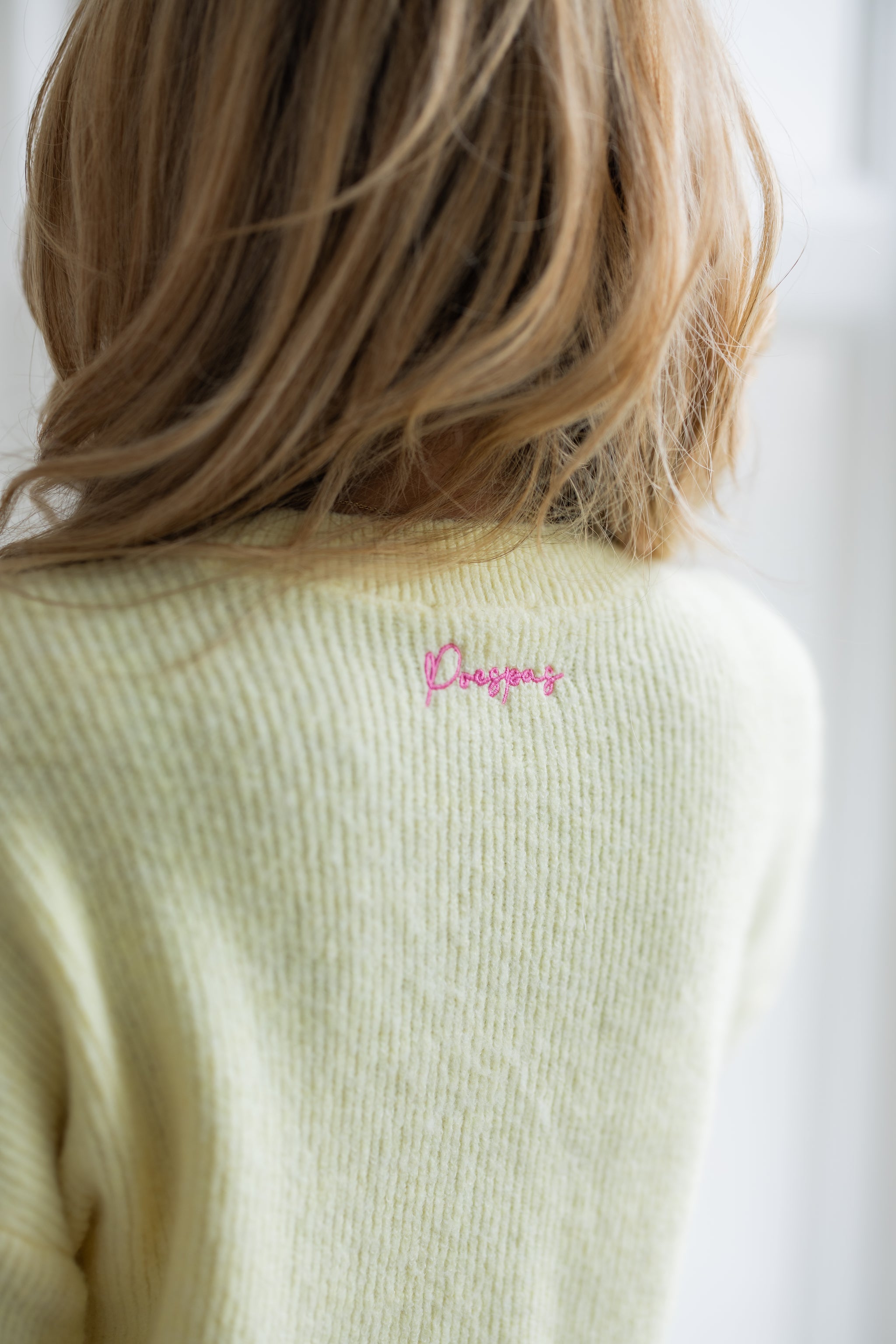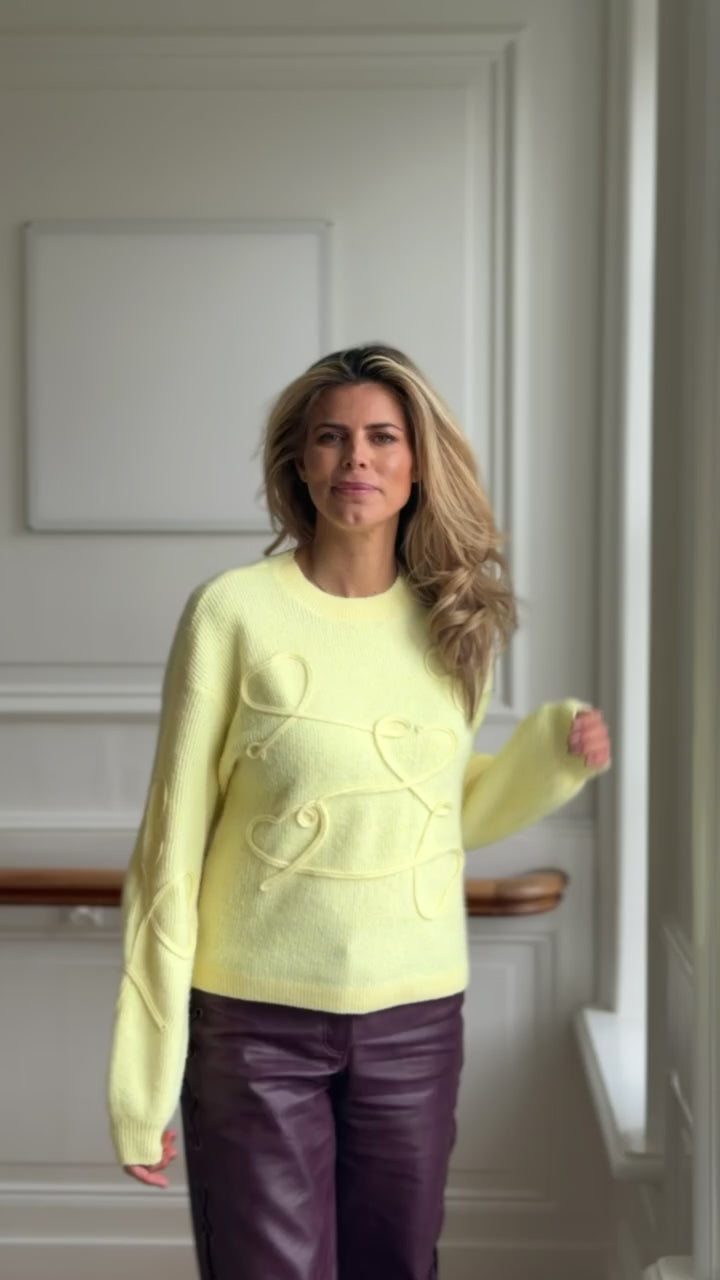 Lichtgele sweater met hartjes