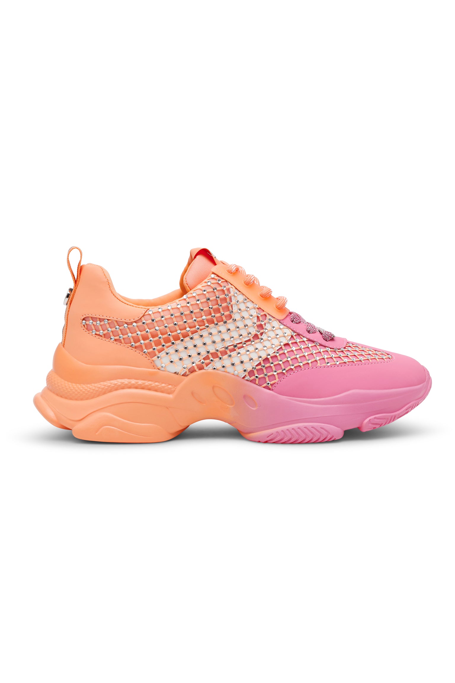 Sportieve sneaker met oranje/roze kleurverloop en steentjes