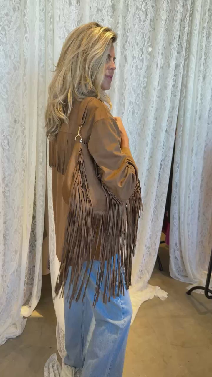 Bruin jacket met franjes en knopen