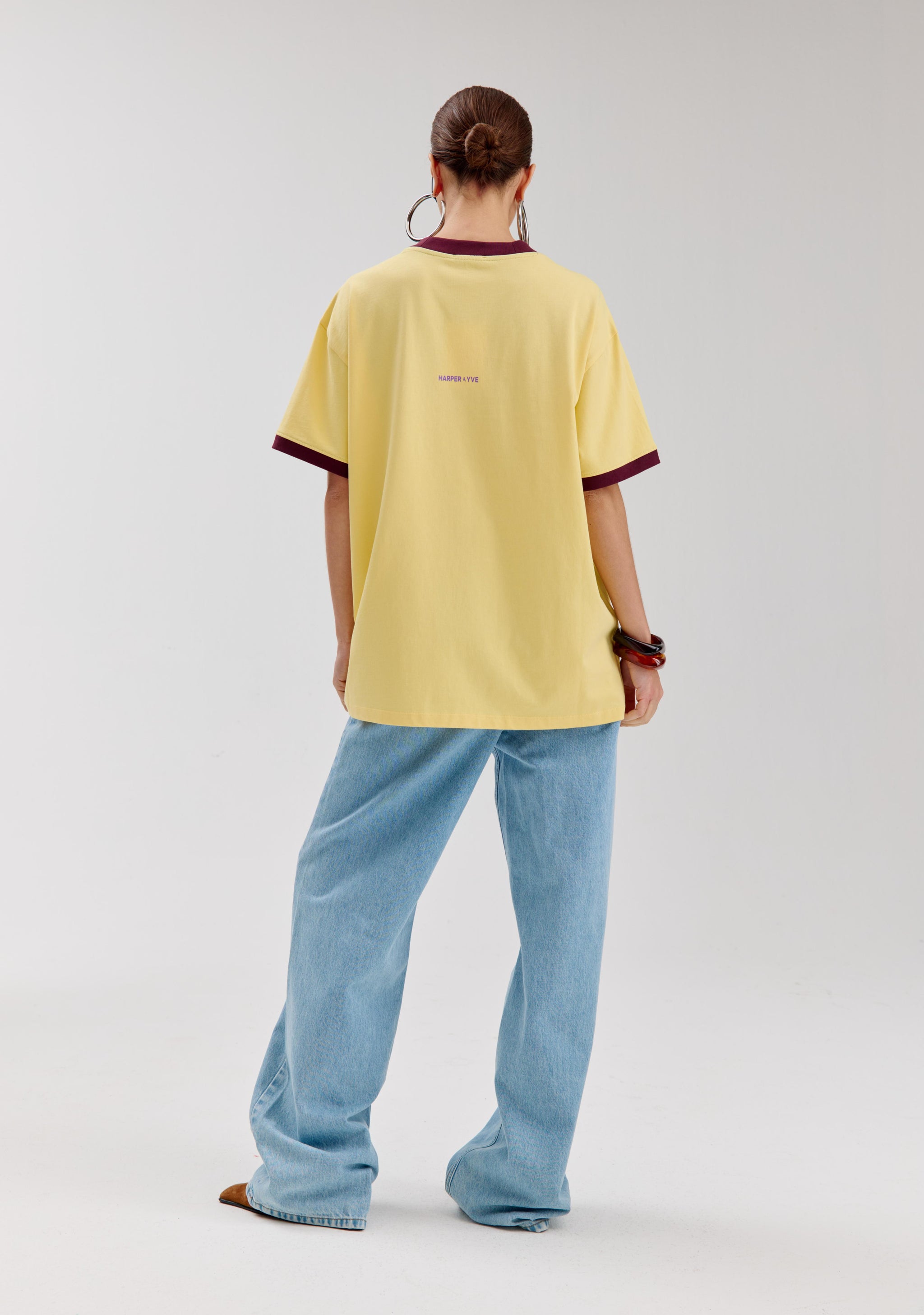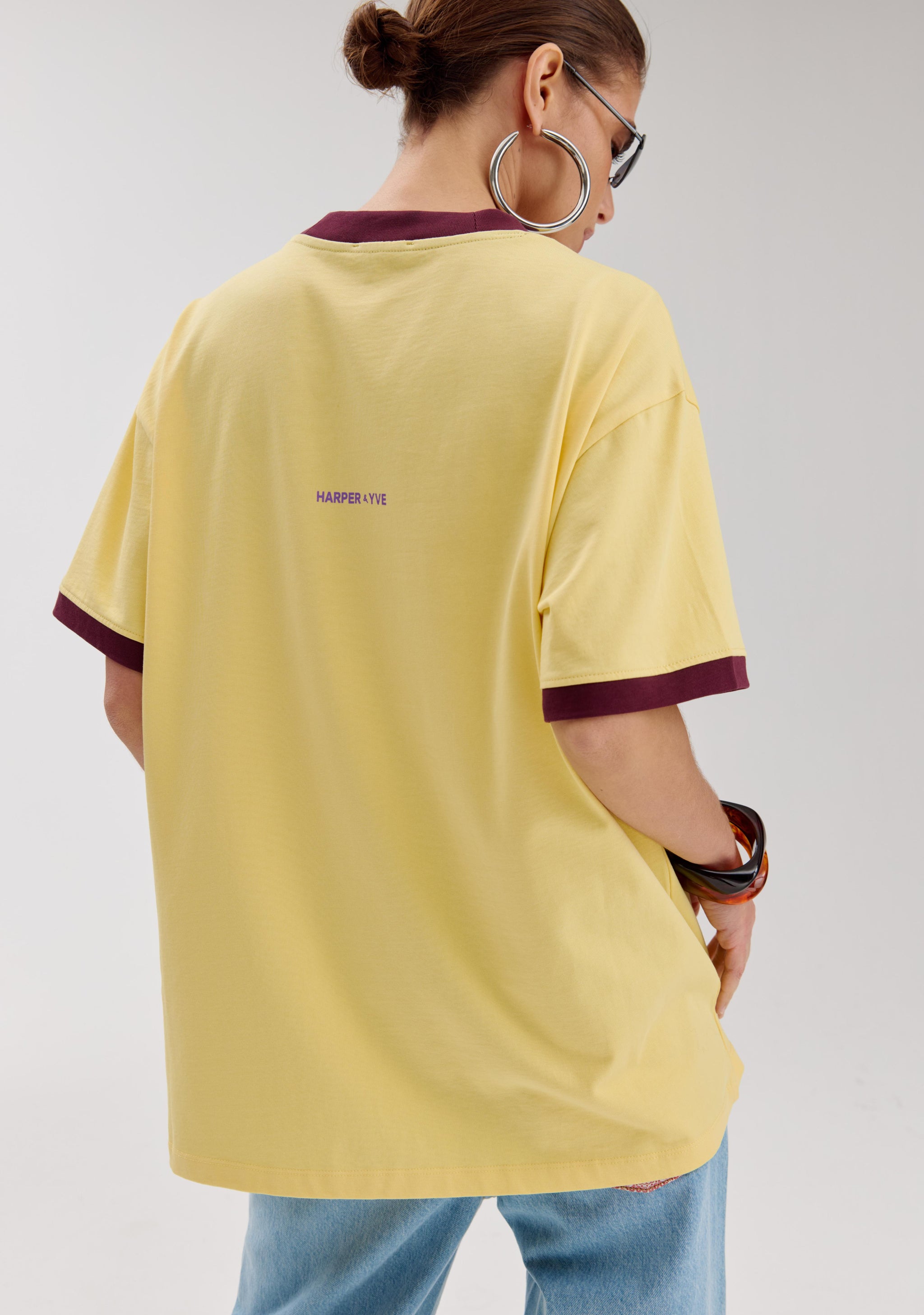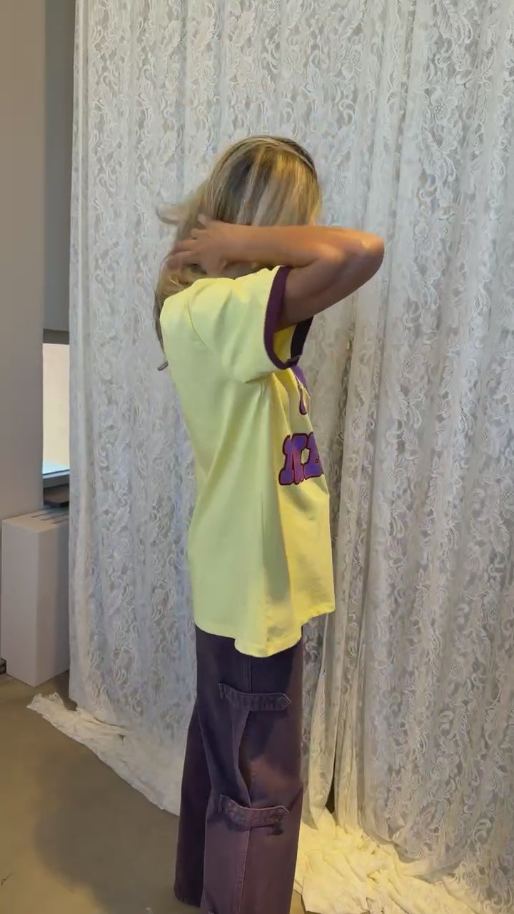 Geel oversized shirt met paarse illustratie