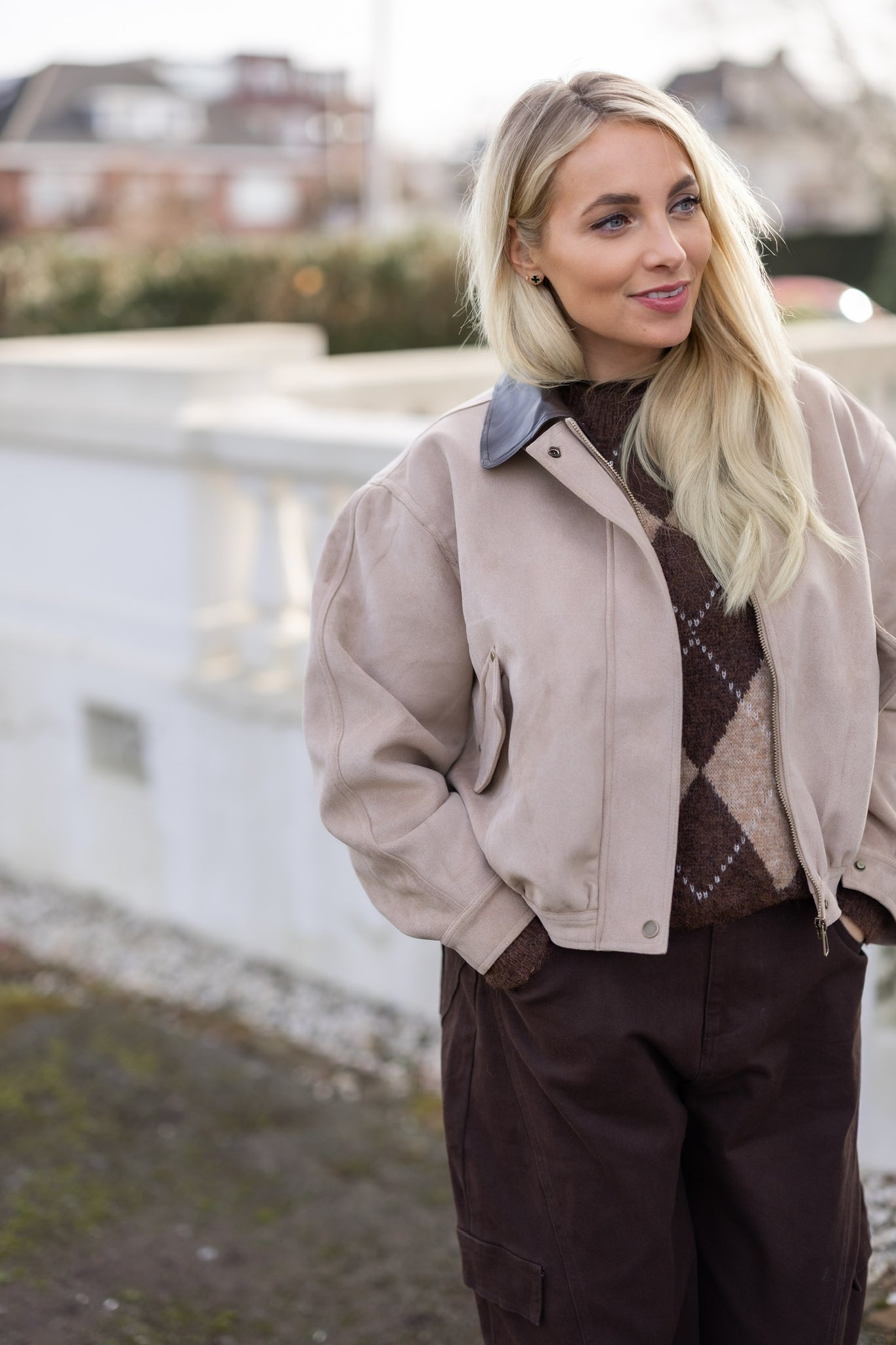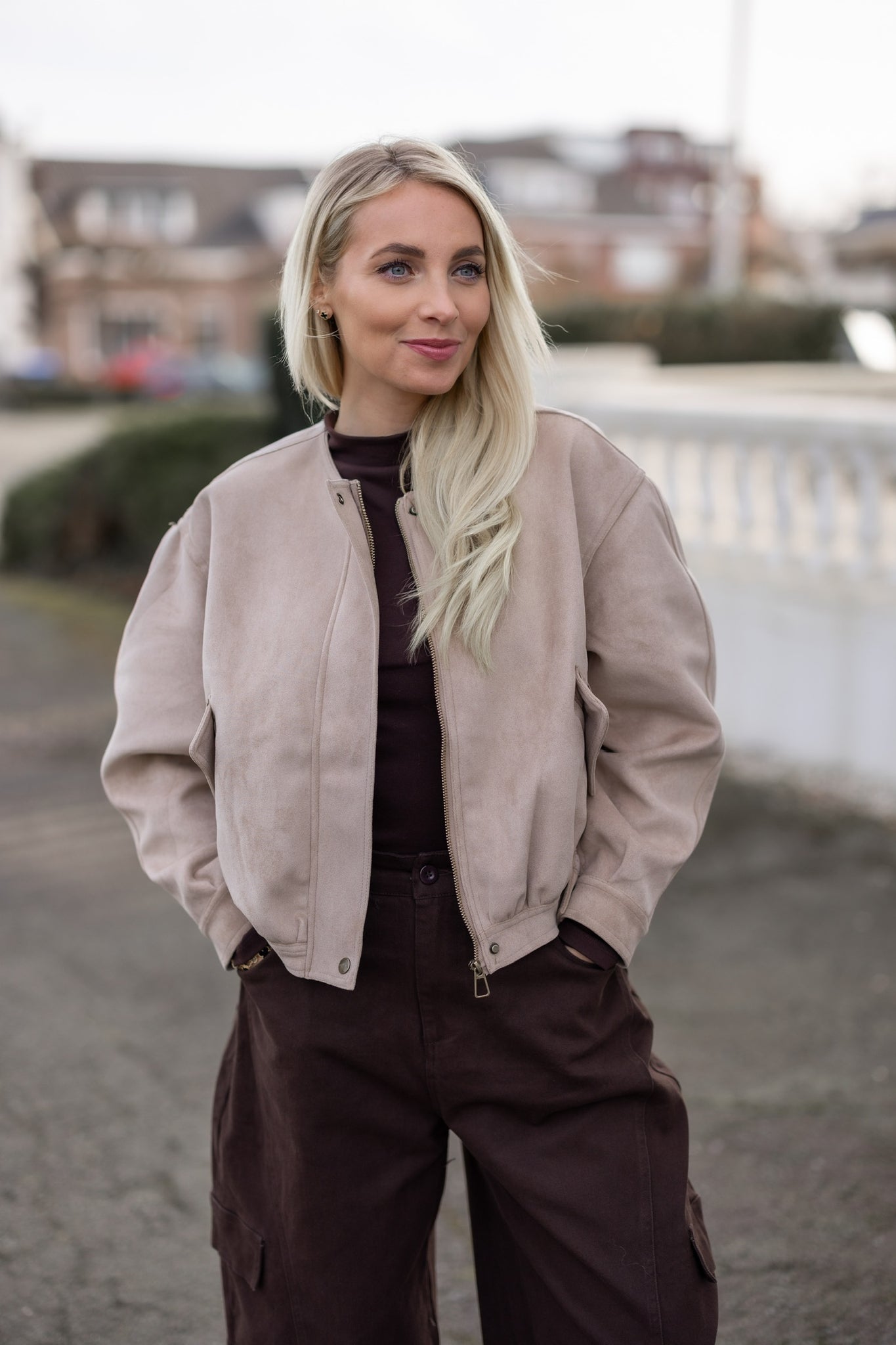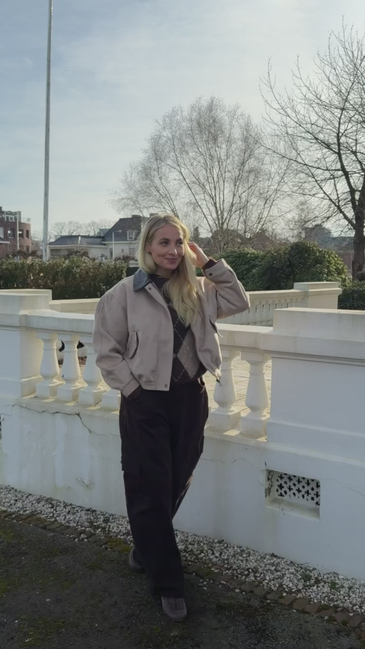 Zandkleurig jasje met kraagje en steekzakken