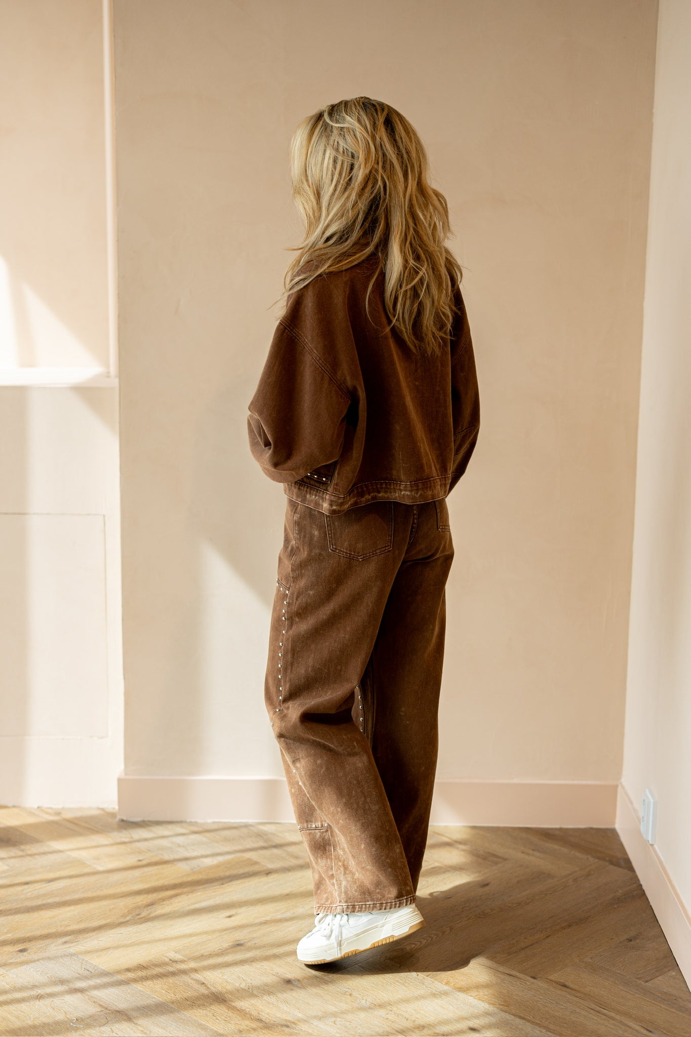 Bruin denim jasje met knopen en studs