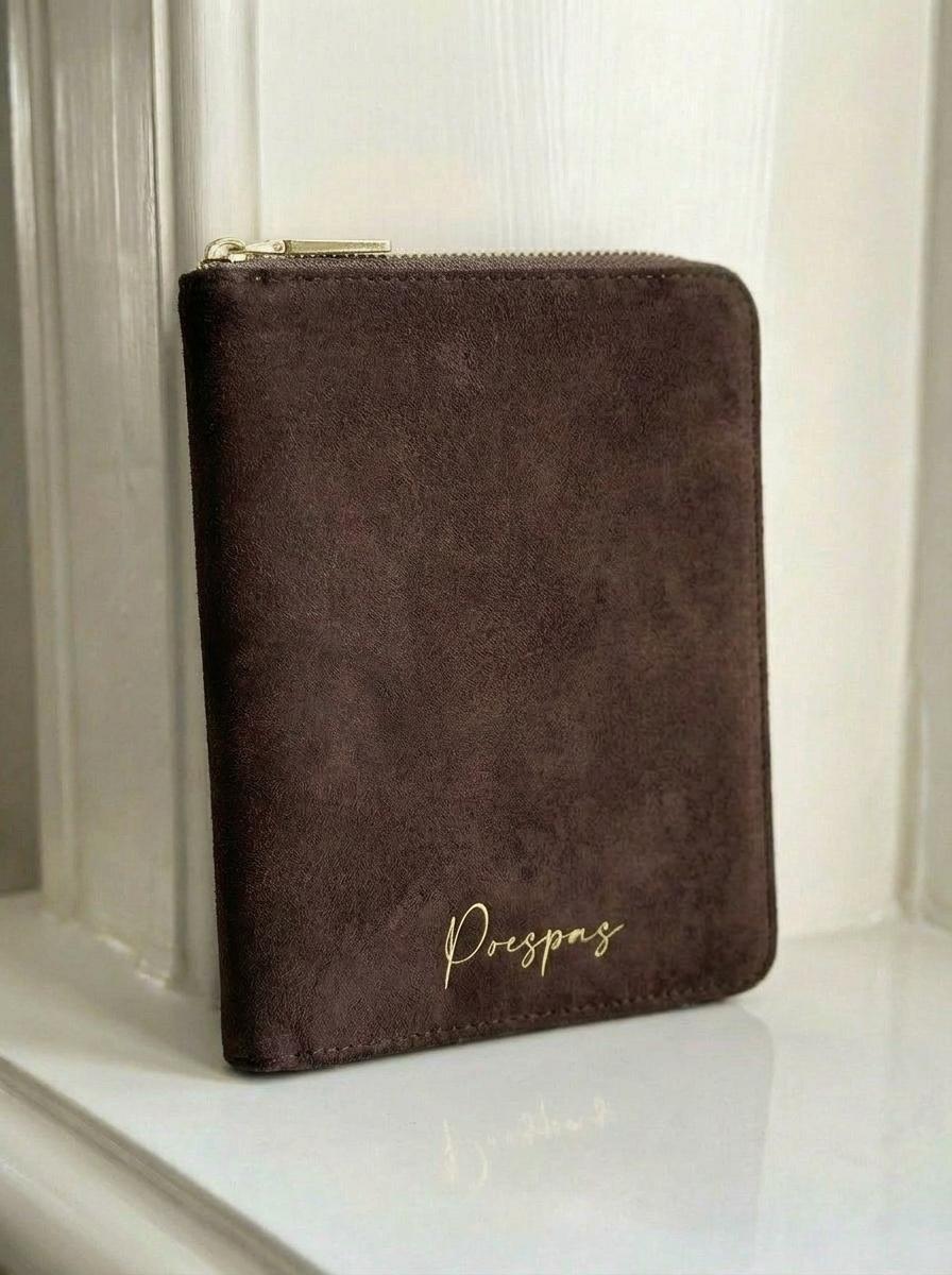 Suede bruine paspoorthoes voor 1 of 2 personen